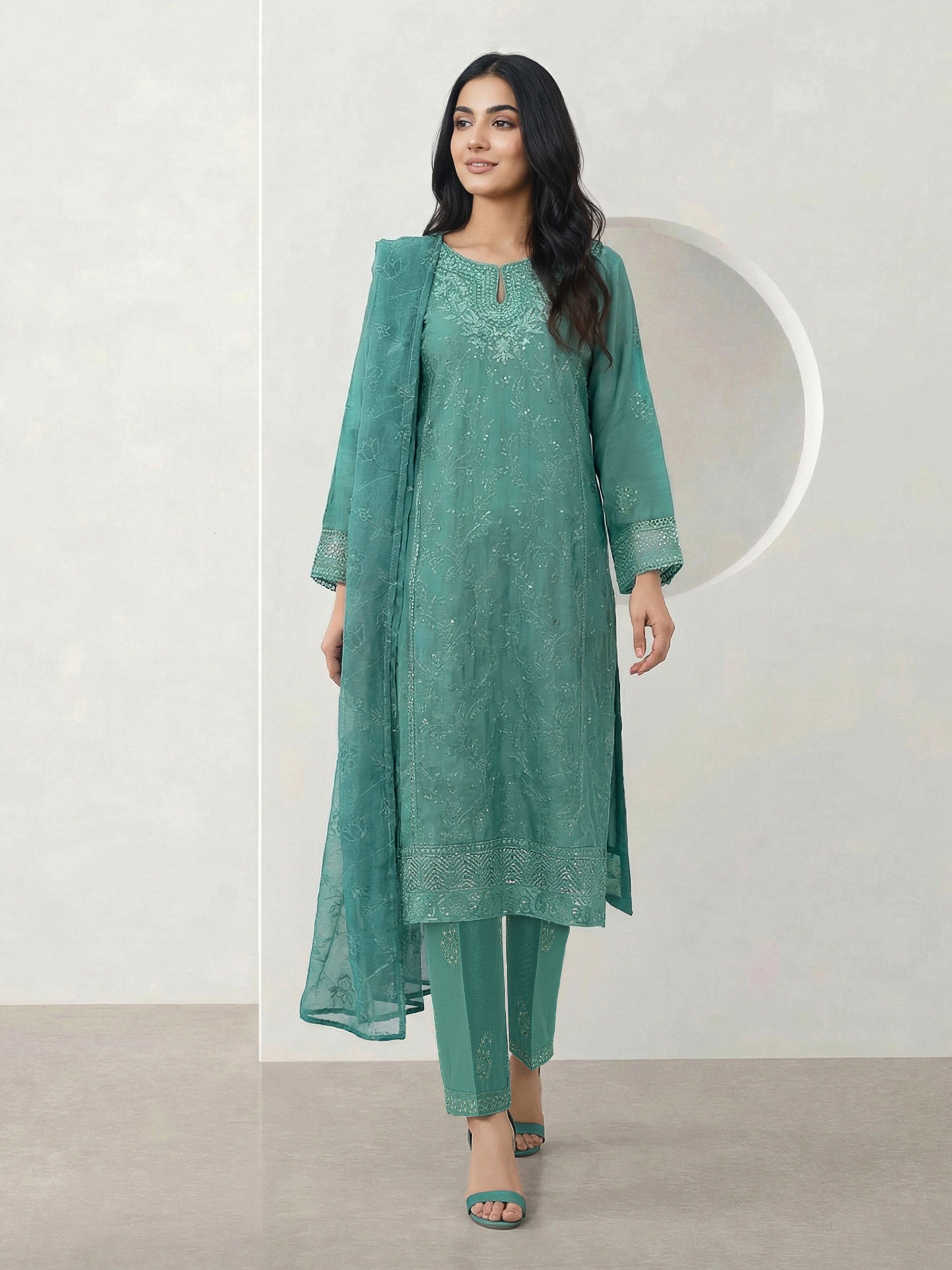 ProductsLimelight3 Piece Dobby Suit- Embroidered (Pret)